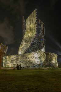 “Trokomod” merupakan makhluk hibrida amfibi yang menggabungkan kuda Troya dengan komodo—hewan endemik Indonesia. Instalasi ini memiliki skala luar biasa: panjang 7,5 meter × lebar 3 meter × tinggi 3,5 meter.